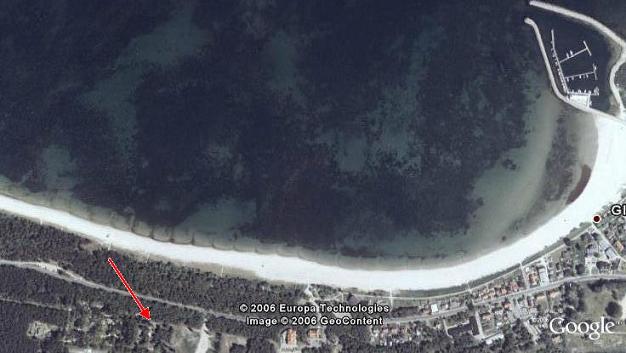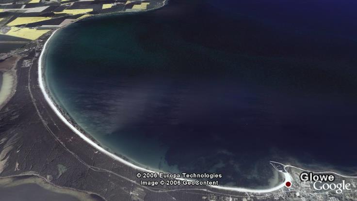(Quelle: Google Earth) Weitere Luftbildaufnahme oder Satelliten-Zoom von Google Maps vom über 10km langen Sandstrand.