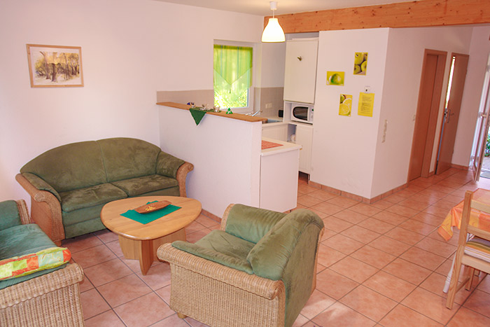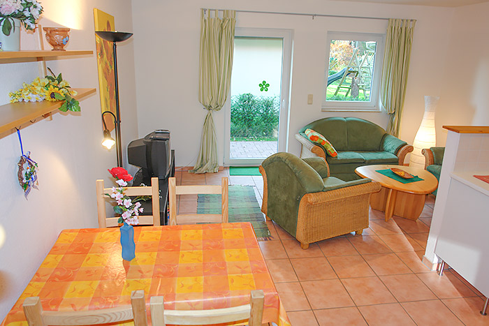 Der großzügige Wohn- & Ess- bereich mit ca. 30 qm Wohnfläche, Fußbodenheizung und 48'' - 120 cm Full-HD TV.